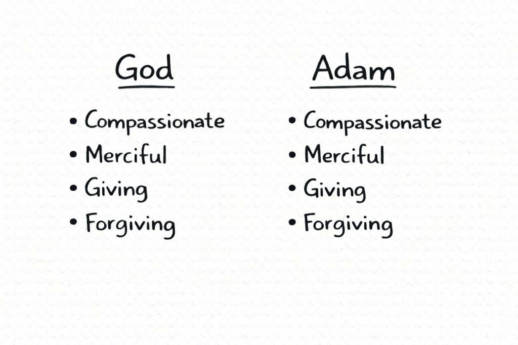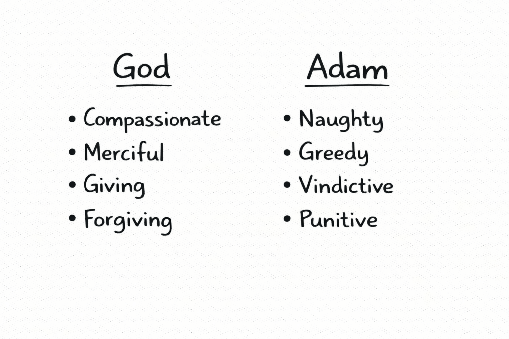 For example, when comparing the lists of what God and Adam desire, it’s clear they are not spiritually close. They have opposite desires. (Adam = regular person, not the first person.)