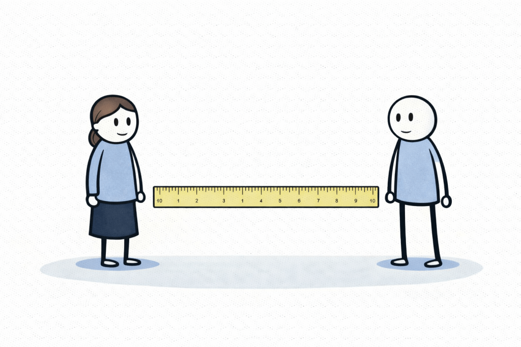 In the physical world, we measure closeness with a ruler or some other measuring device. You can see that the two below are 11 units apart from each other.