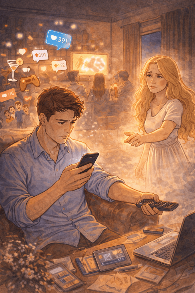 Over time, the bliss wears down, and our protagonist becomes wrapped up in the novelties and distractions of the day. His heart no longer burns for the One.
