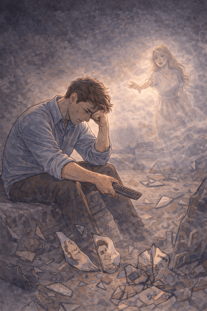 Lost and alone, our isolated protagonist lives a shattered life. But even in this dark shadow existence, the One unceasingly calls for him. Pleading for him to wake up and come home.